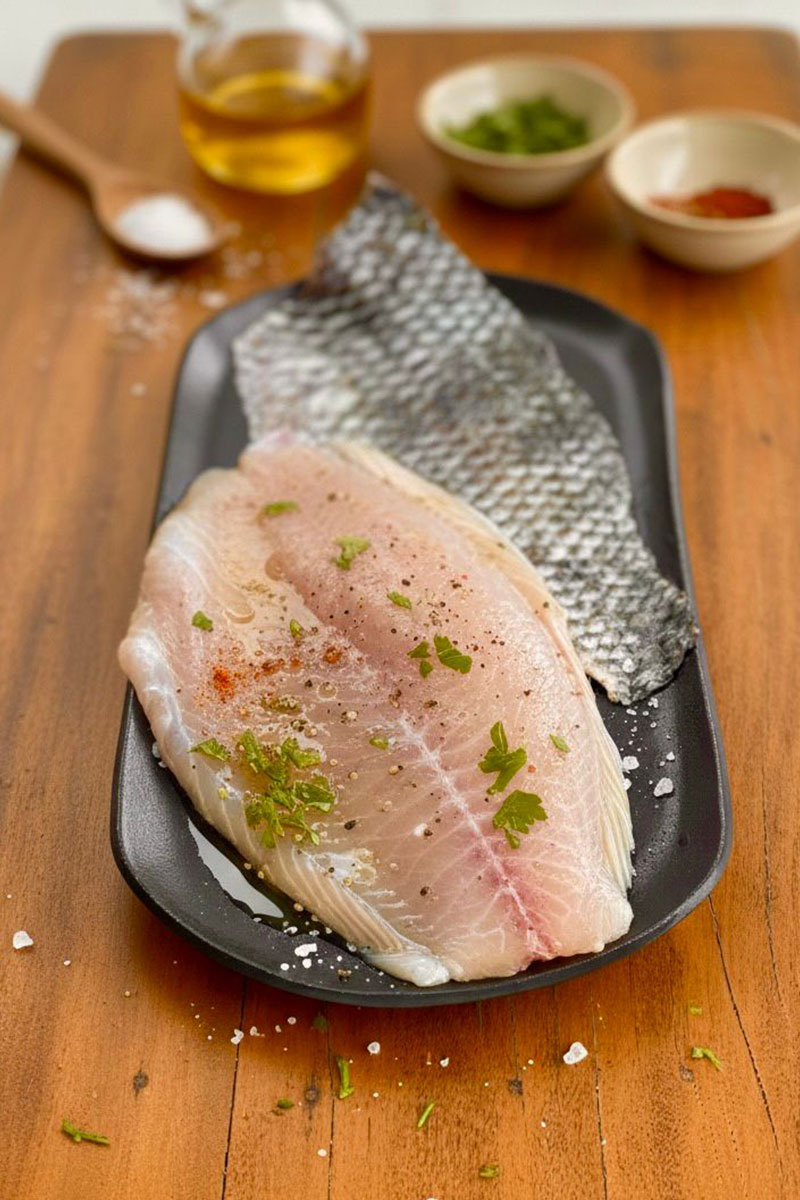 Tilápia com pele, o corte preferido pra quem quer impressionar no churrasco.